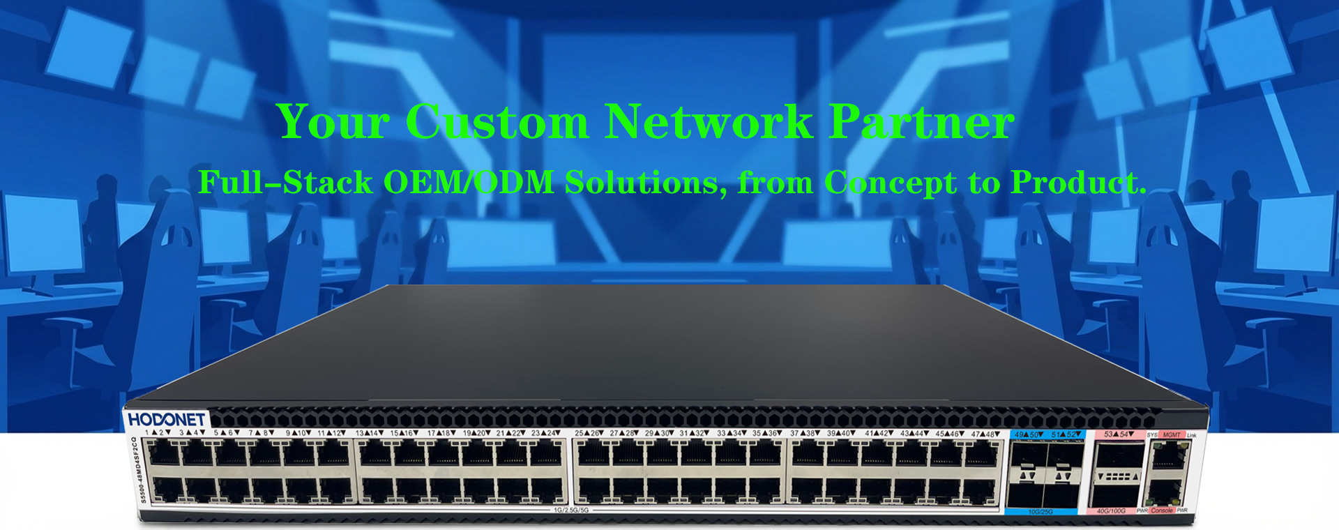 Founded in Shenzhen in 2015, HODONET serves a global clientele. We are a technology company dedicated to the research, development, and manufacturing of reliable network switches. Since our inception, we have continuously specialized in the OEM/ODM field, providing customized solutions for enterprise networks, data centers, campus networks, and e-sports networks worldwide.