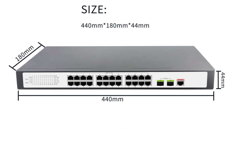 | Interface | Data Ports | 24 x 10/100/1000/2500Base-T RJ45 Ports 2 x 10G SFP+ Fiber Ports |