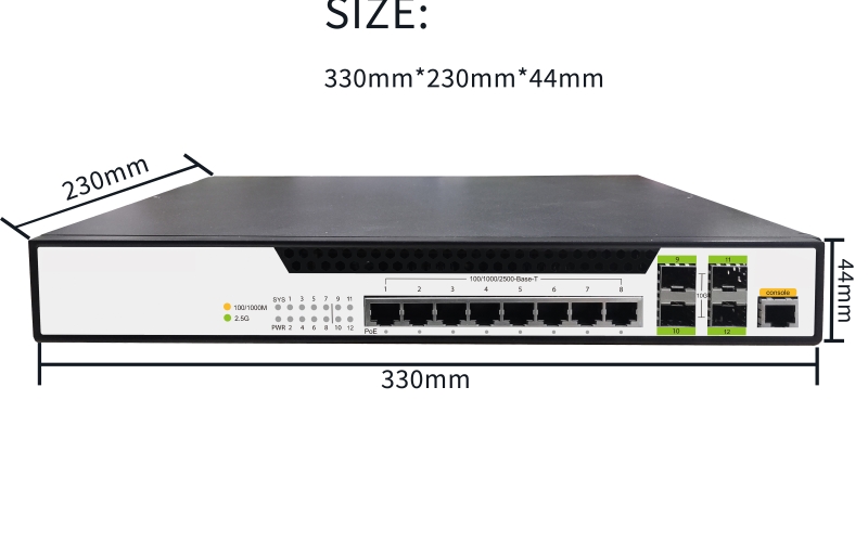 8x 2.5G PoE+ RJ45 ports + 4x 10G SFP+ ports, high-performance PoE access